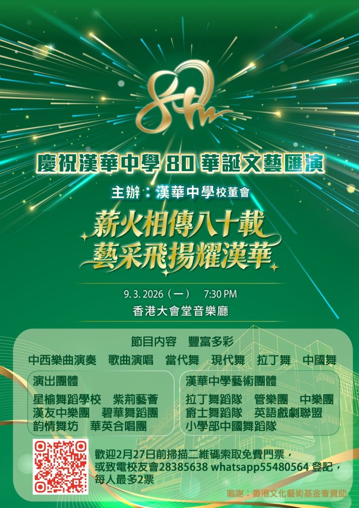 📍歡迎校友登記取票📍😊每人最多兩票 門票有限先報先得電話☎️ :28385638 WhatsApp : 55480564或掃描海報上二維碼2月27日截止